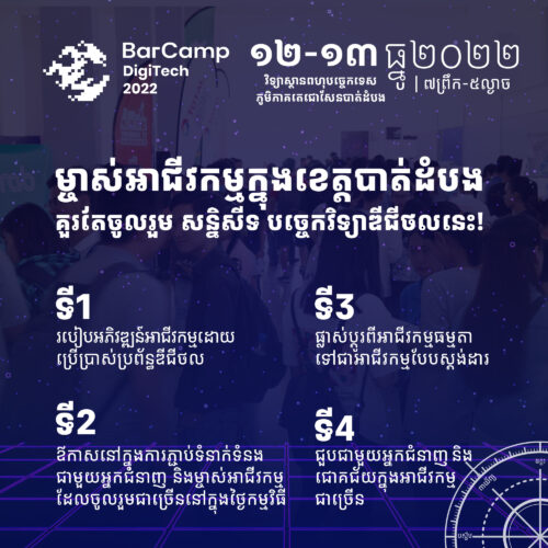 For the first time, BarCamp DigiTech was held in Battambang, bringing together 1,500 business and technology executives as well as students to promote technology adoption in all fields. Tech and business executives met in Battambang province for BarCamp DigiTech 2022 to exchange ideas and knowledge with proprietors of small and medium-sized businesses (SMEs) and college students.