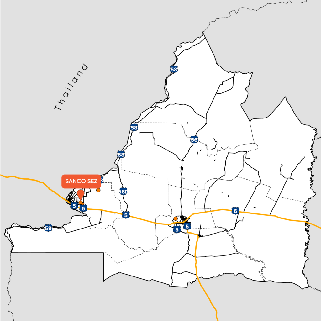 Sanco Poipet Special Economic Zone is a 83-hectare industrial park in Poipet city, Banteay Meanchey province. Sanco Poipet Special Economic Zone is a 83-hectare industrial park in Poipet city, Banteay Meanchey province. The tenants mainly manufacture automobiles, electric and electronic components for export to Japan and Thailand.