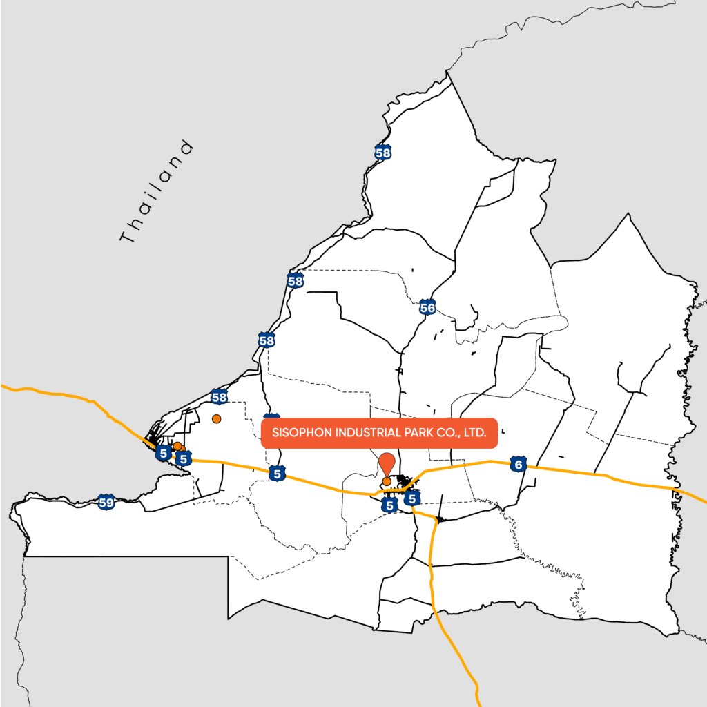 Sisophon Industrial Park locates in Serei Saophoan city, the provincial city of Banteay Meanchey province. Established in 2012, there are three garment related factories operating in the industrial park.